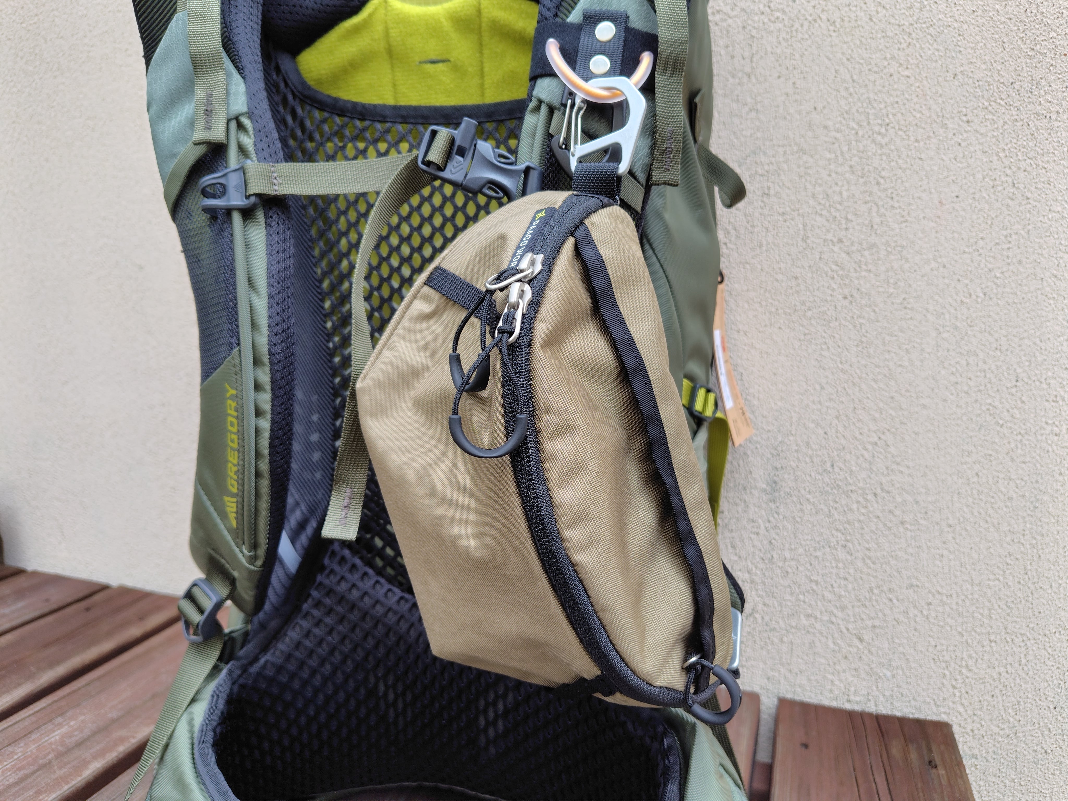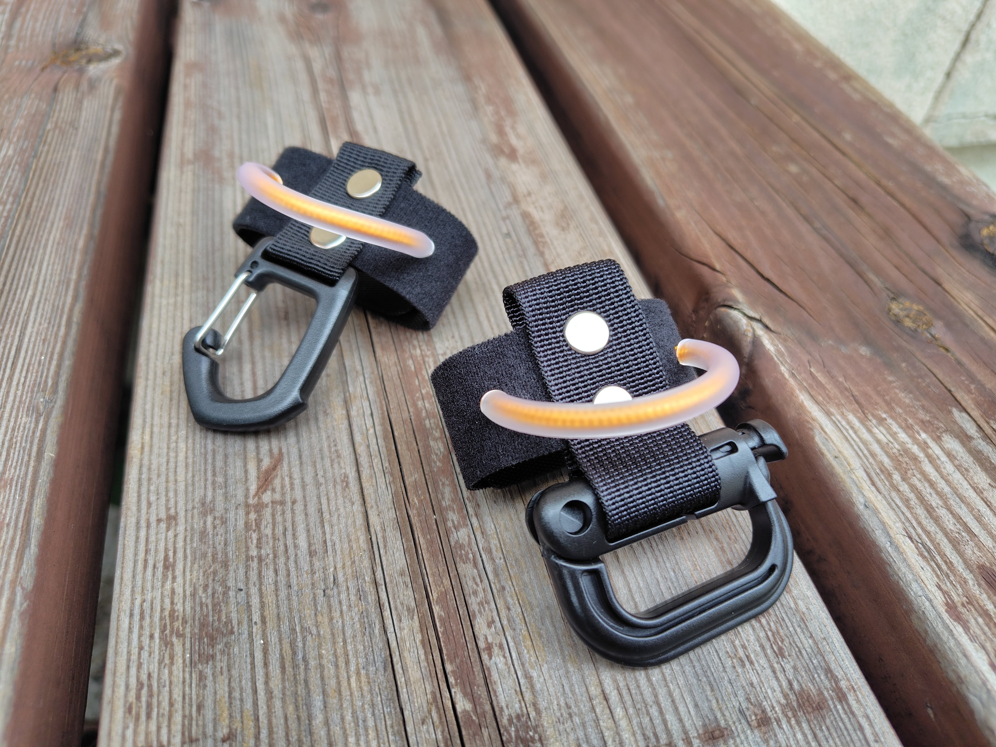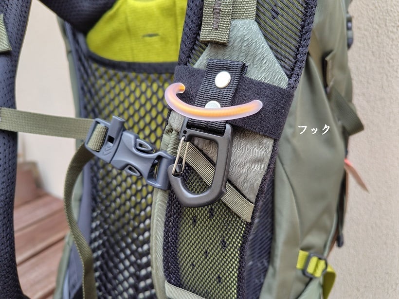 せっかく取付スペースを消費するのでもうプラスαの機能を付けれないかとカラビナを装着。