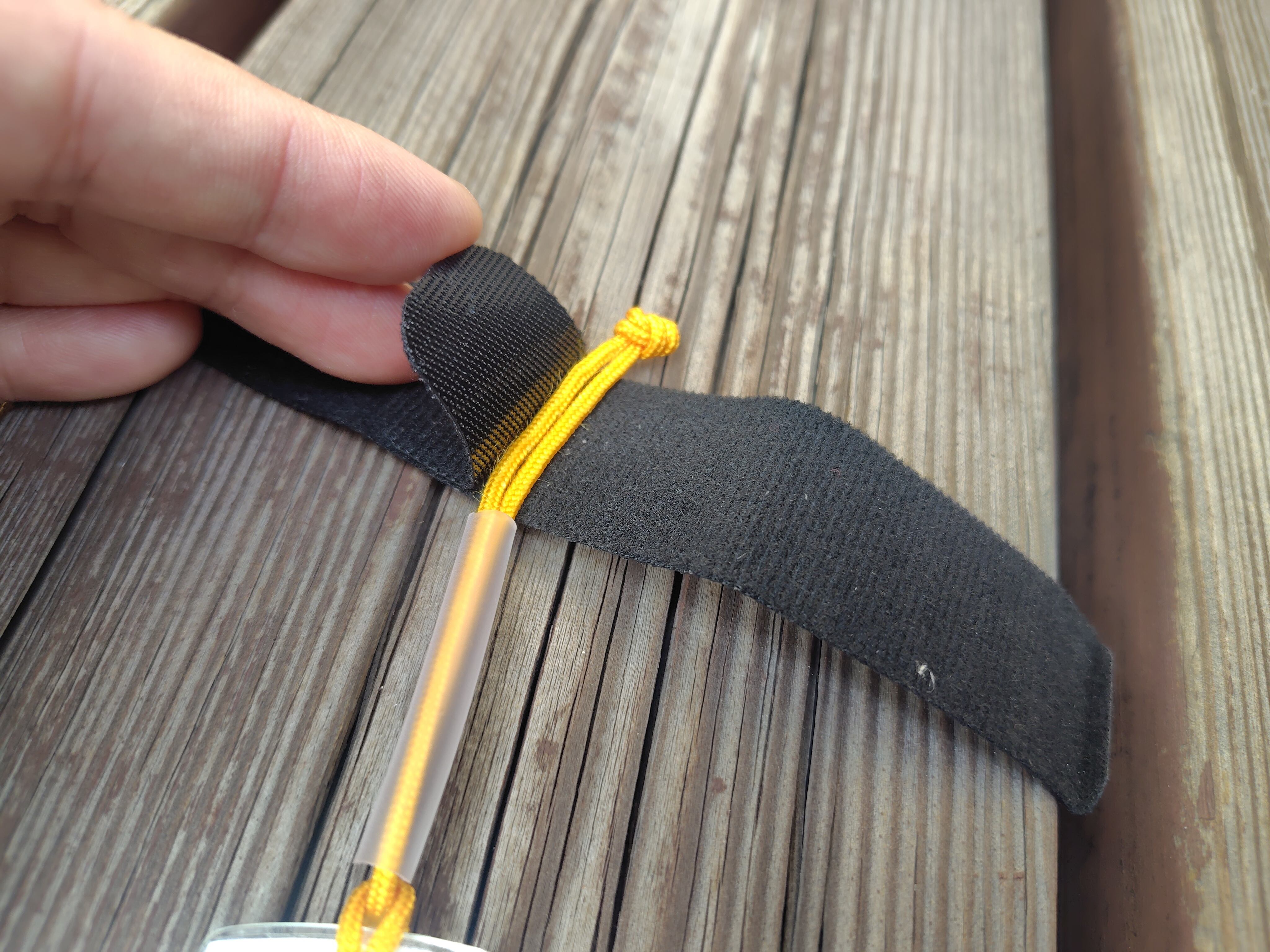 ベルクロアタッチメントを使って取り付ける場合は写真4枚目のように挟んで取り付けてください。
