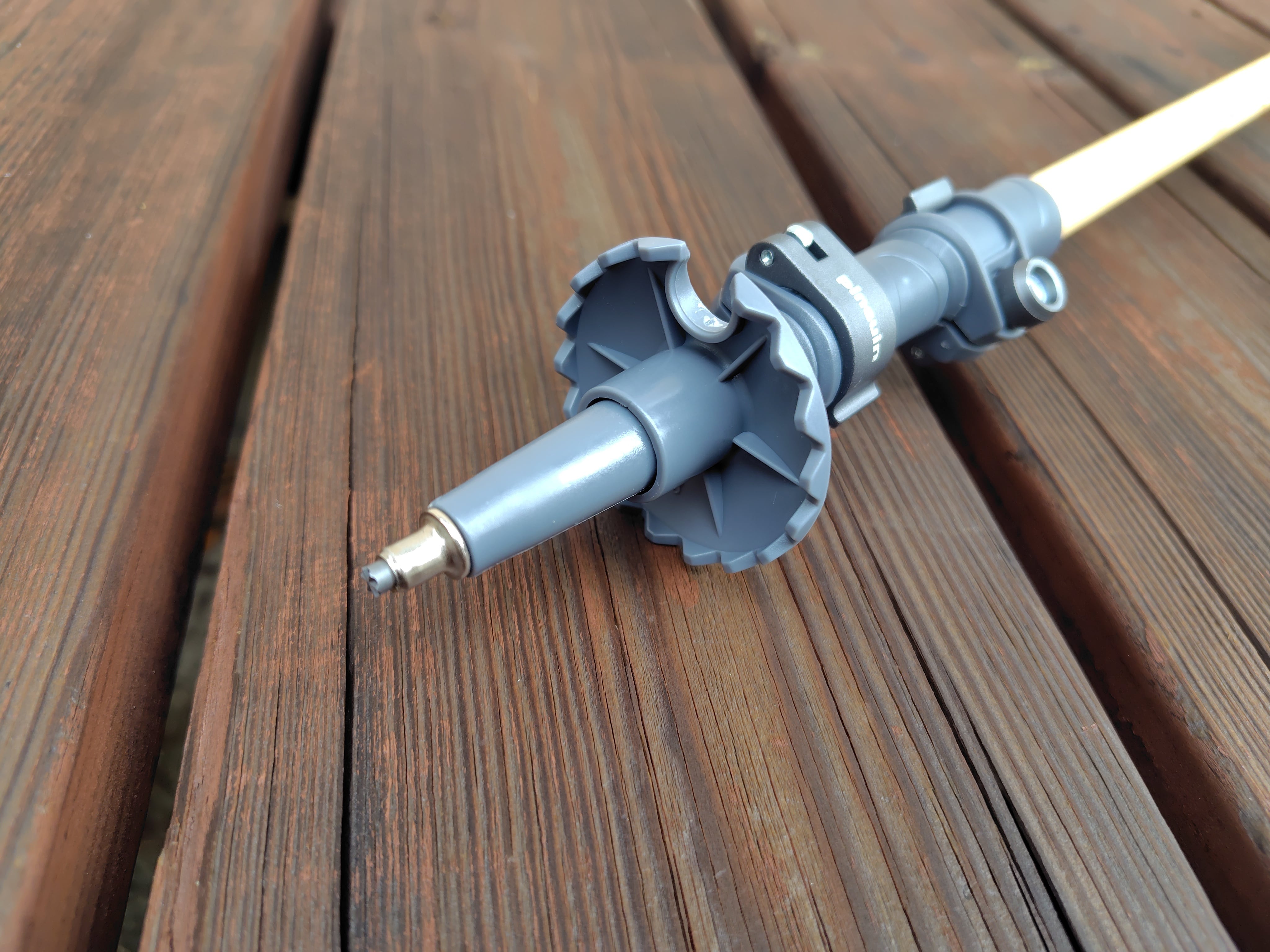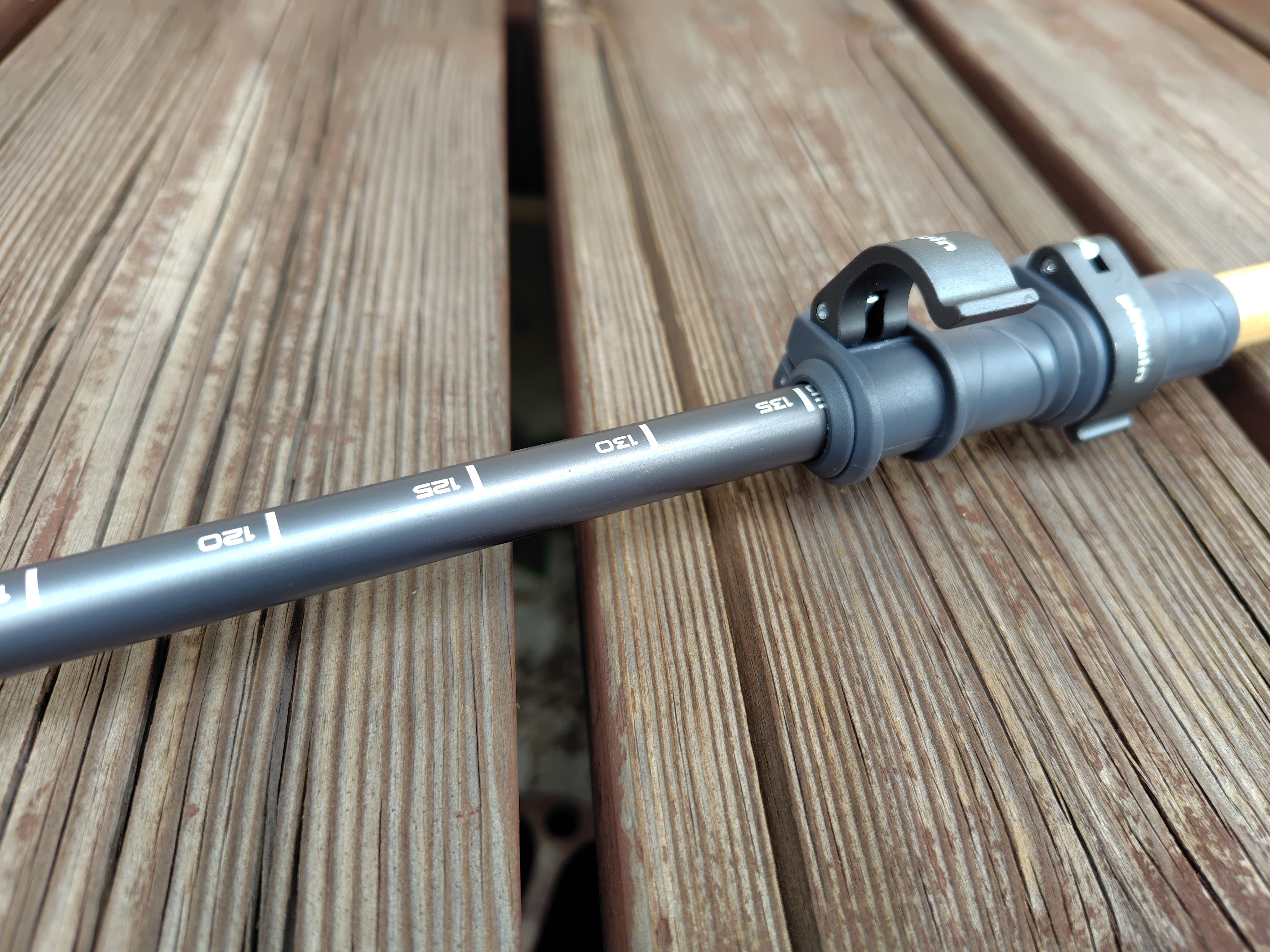 長尺、雪山では使わないことを前提に中段シャフトを大きくカットして軽量化しました。