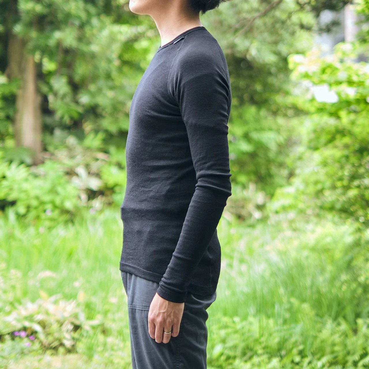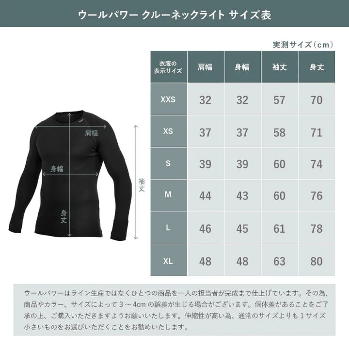 ウールパワーのウェアの中でも最も薄い生地の「LITE」シリーズは、肌に最も近い位置で着用するベースレイヤー。