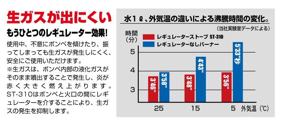 低温の外気により、火力低下を起こしやすいCB缶の弱点をマイクロレギュレーターが解消。外気温25℃~5℃の環境下でも常に一定の火力を発揮します。また、連続使用によるドロップダウンの影響を受けにくいマイクロレギュレーターの特性に加え、直径19cmまでの大鍋使用ができる大きなゴトクを装備することで数人分の料理もこなすことができます。
