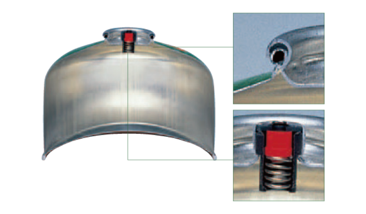 ガス漏れを防ぎ、着脱を可能にした高い精度の「バルブ」。器具を取り付けると自動的に弁が開き、器具を外すと自動的に弁が閉まってガスがシールされるので、人為的ミスを防ぎます。