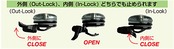 ガイドブックやリーフレットを束ねて方位確認ができる小型コンパス。