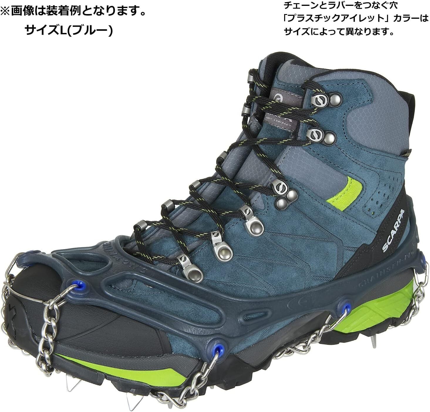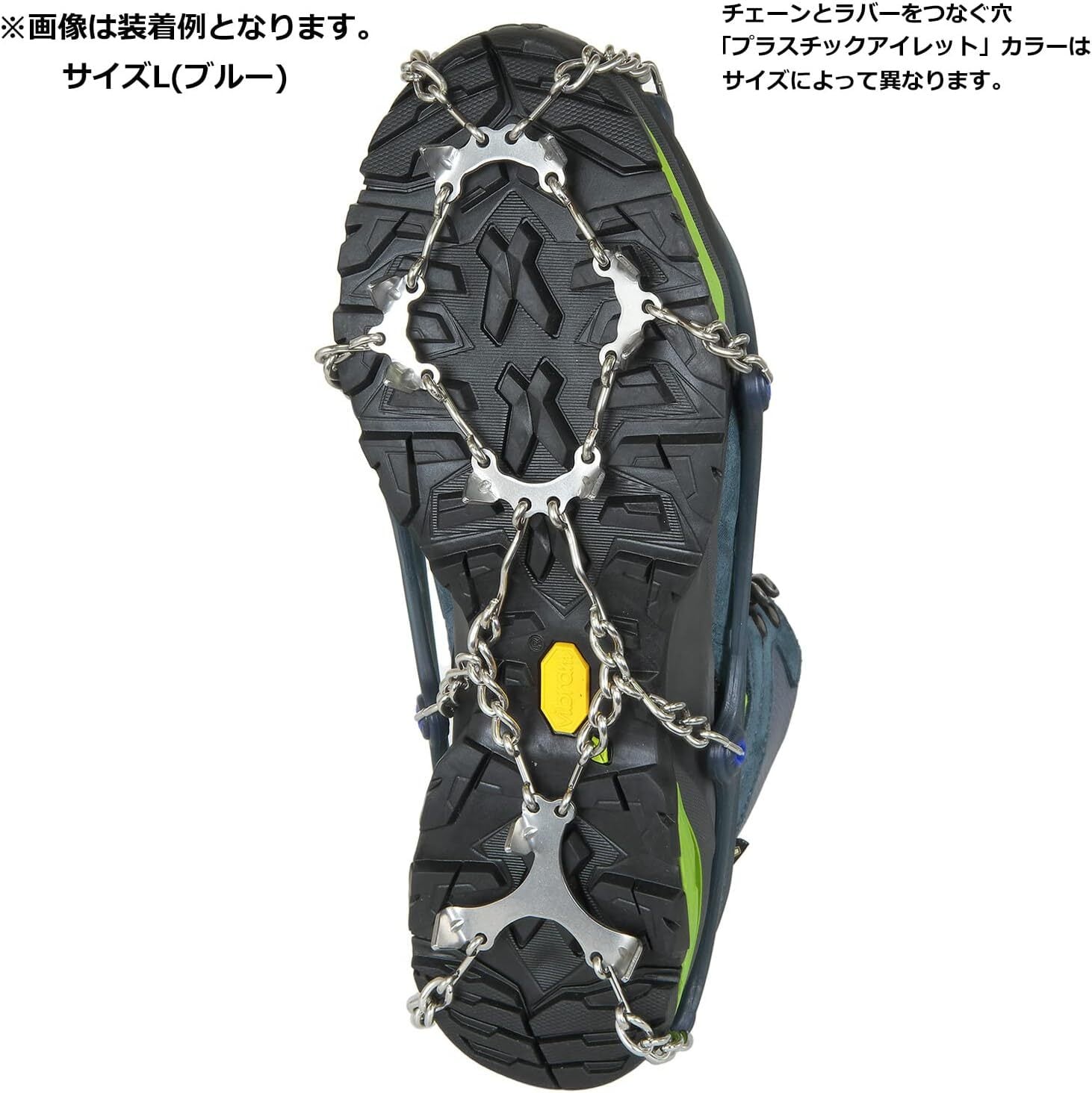 爪数が前8本、かかと3本の合計11本のオールラウンドなチェーンアイゼン。