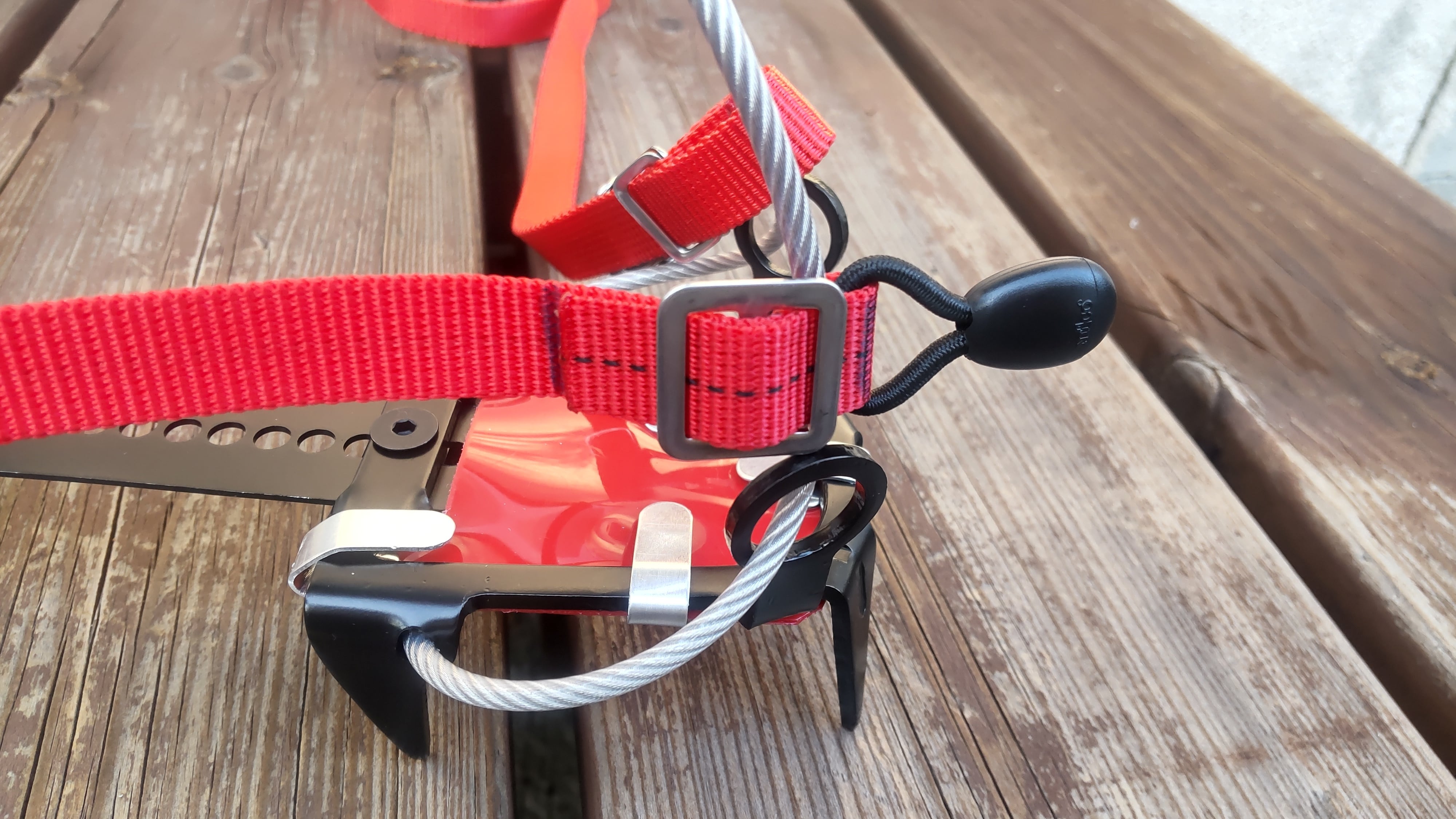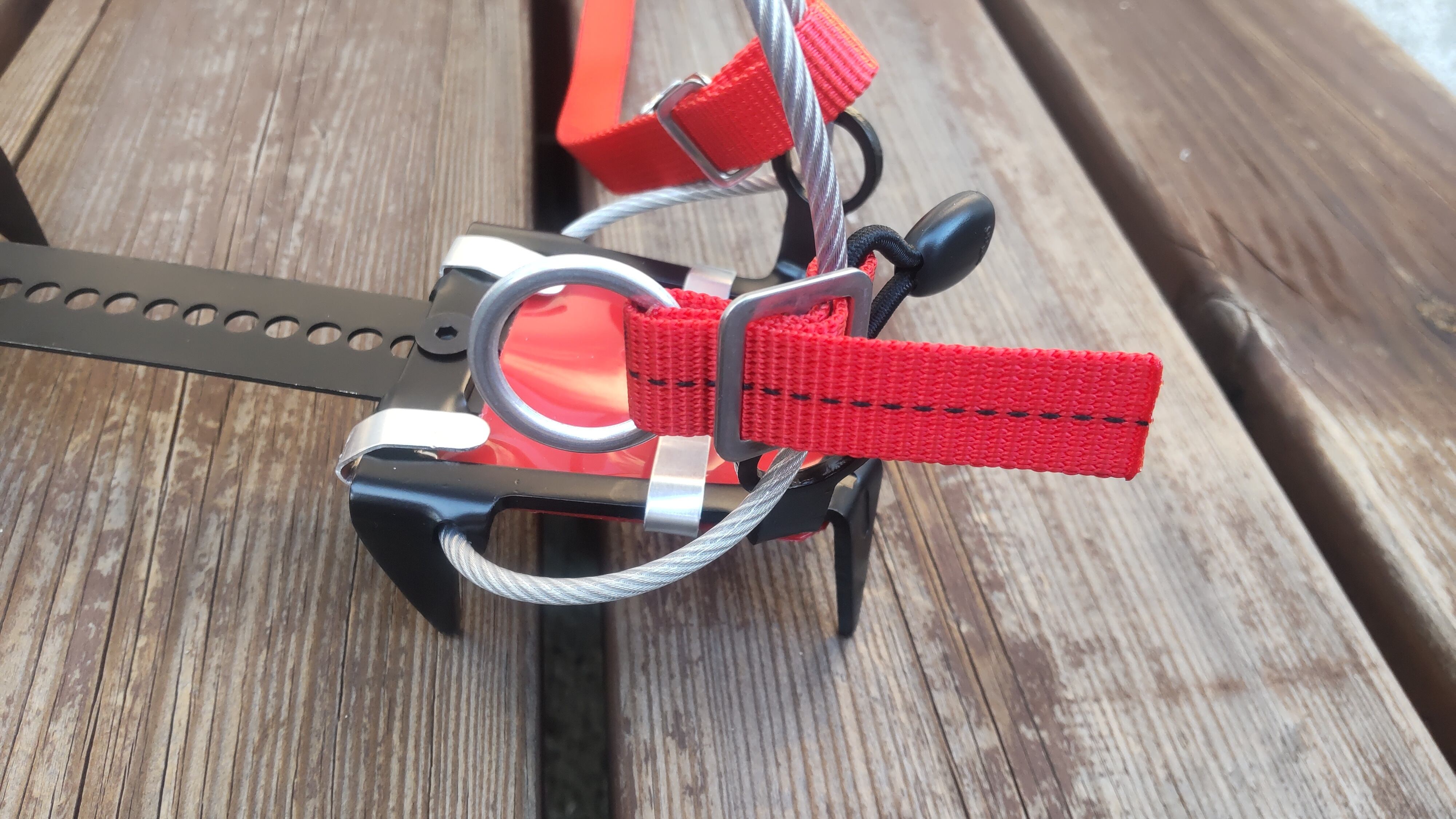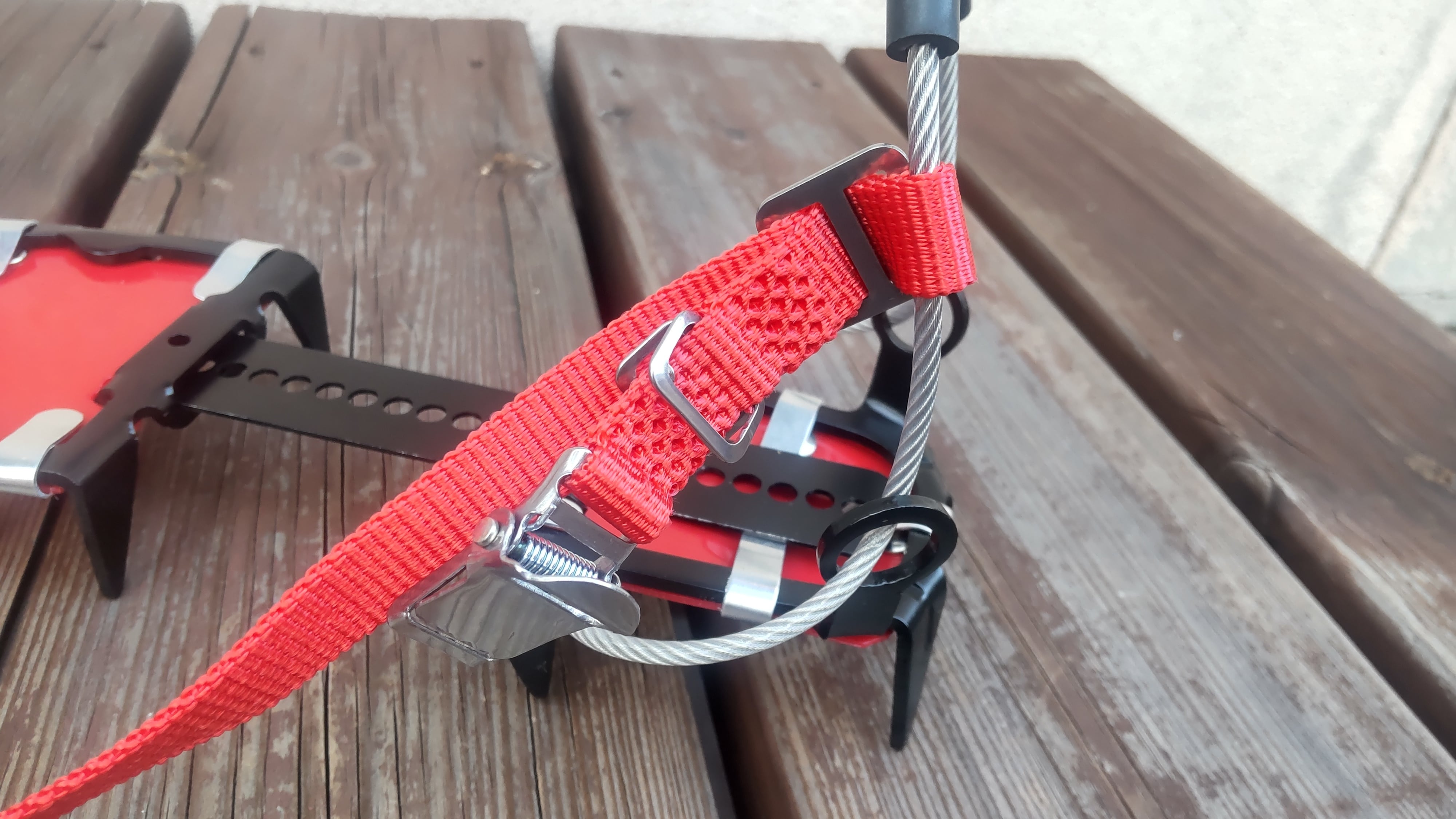 アイゼンのワイヤー外側にアダプターを取り付けます。