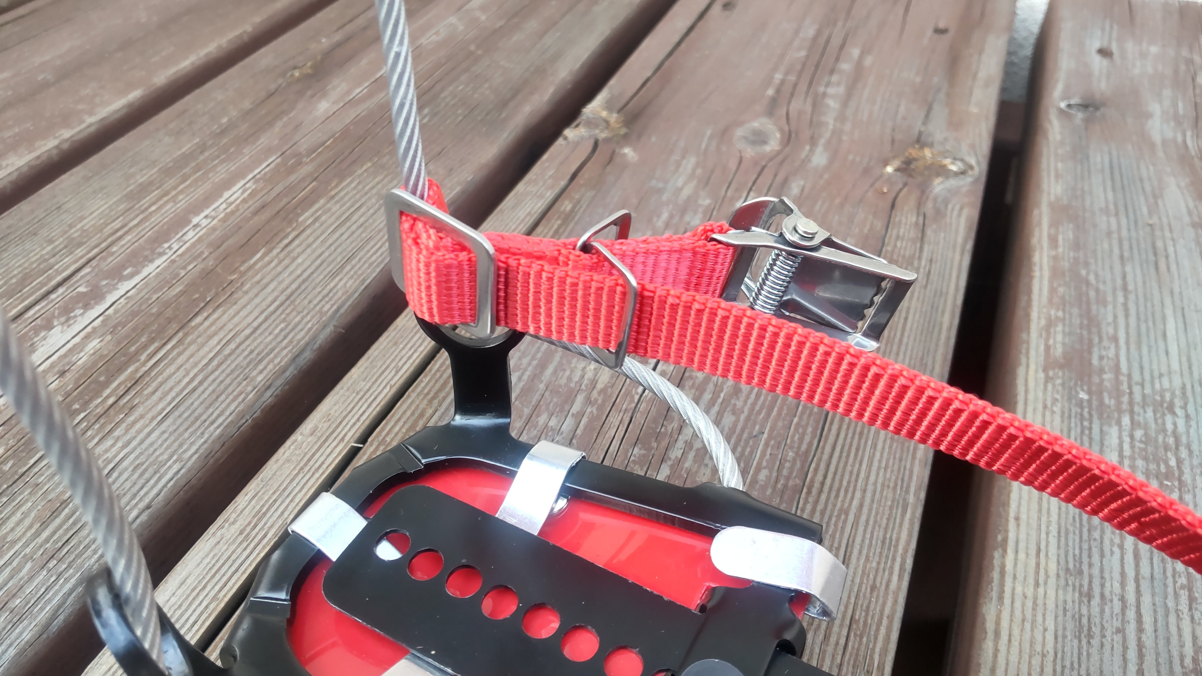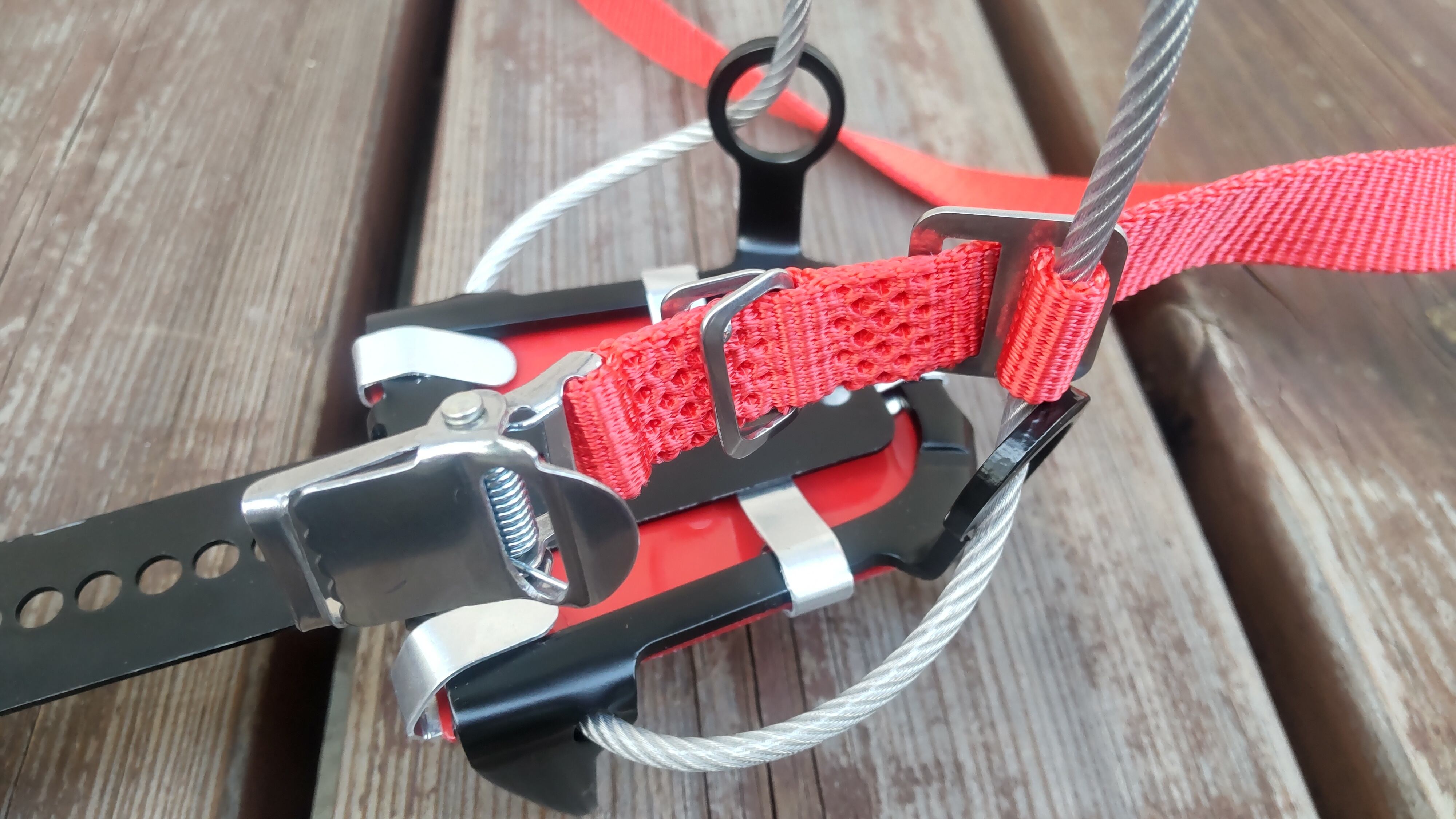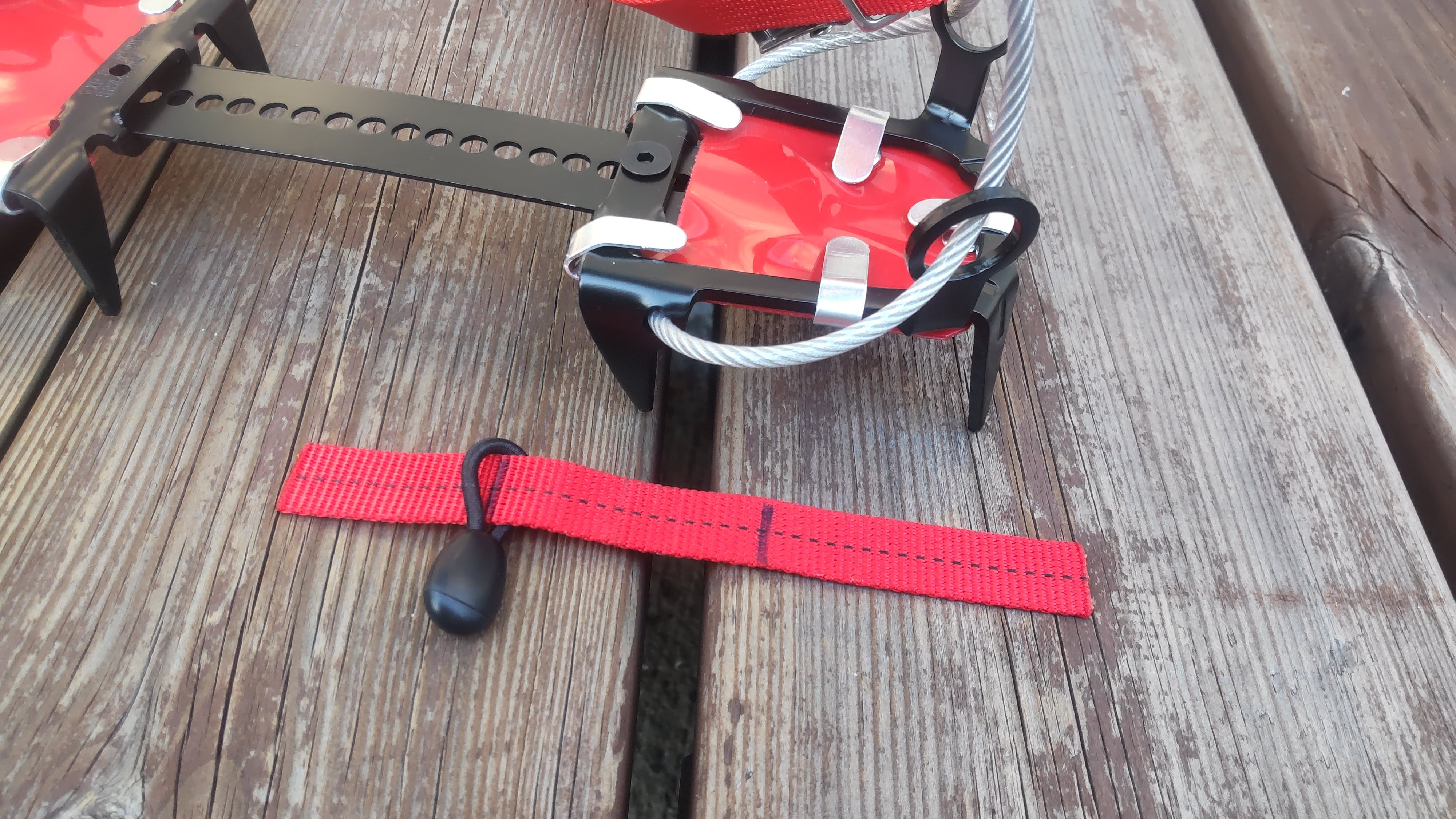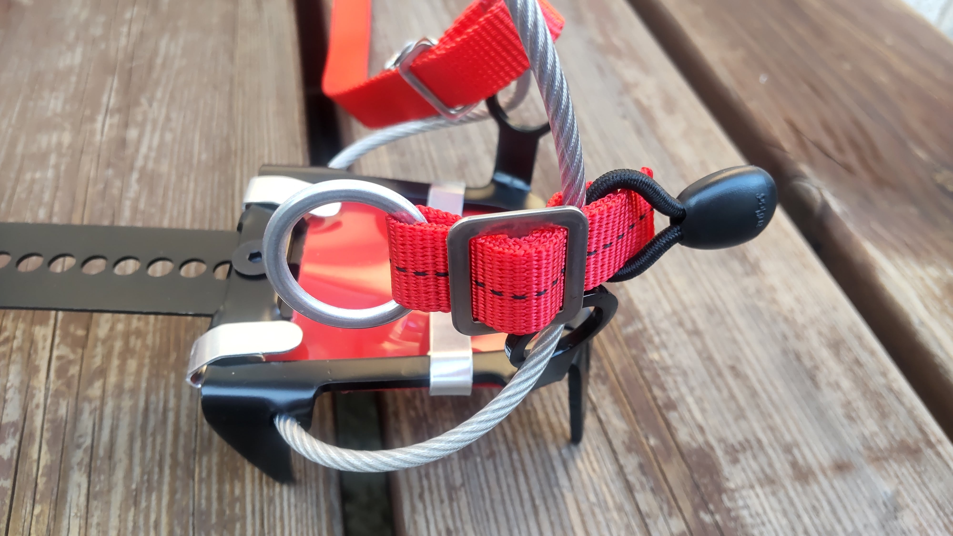 アイゼンのワイヤー外側にアダプターを取り付けます。