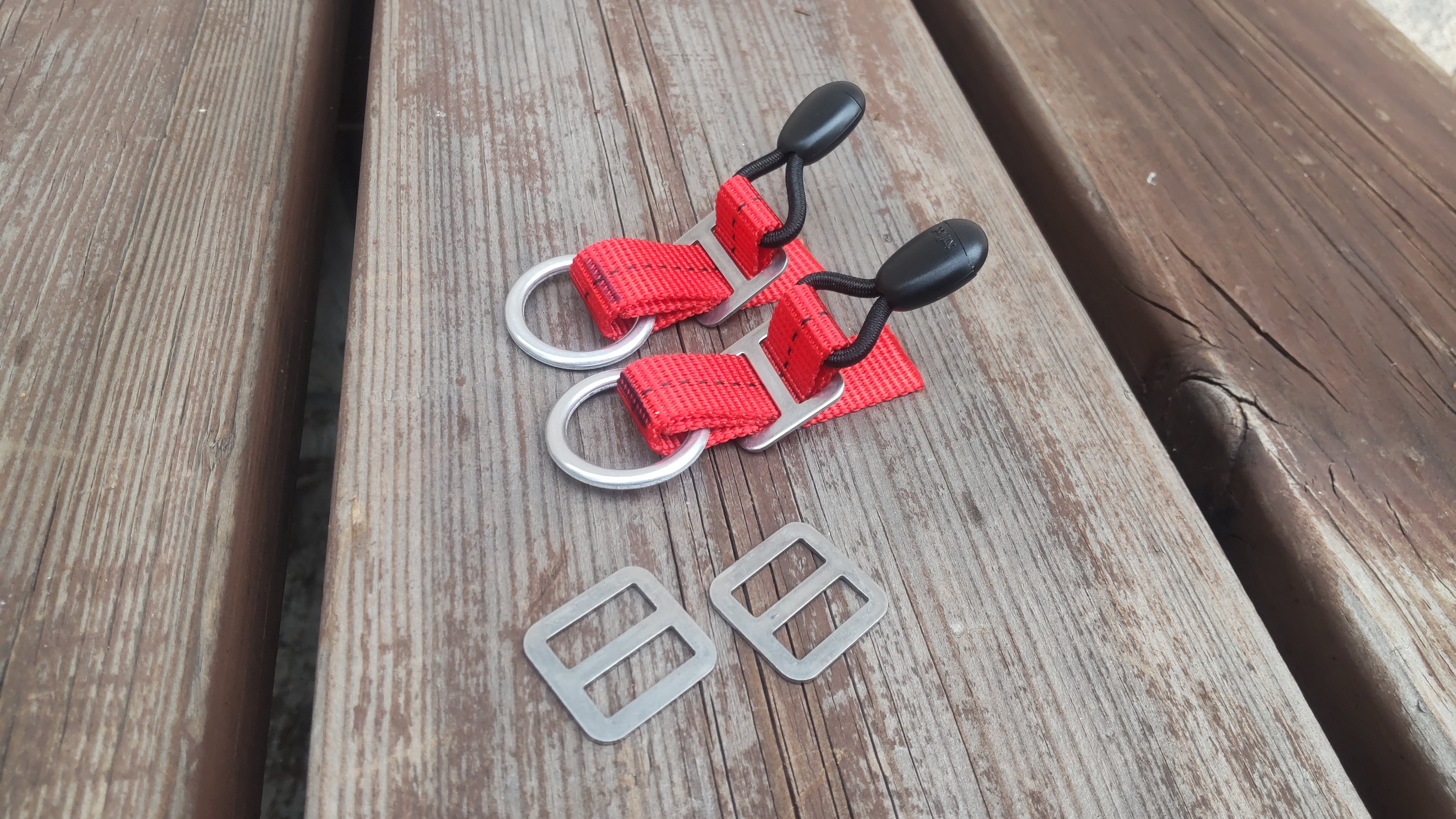 ストラップに調整板を取り付け、内側に美錠付きストラップを取り付けます。